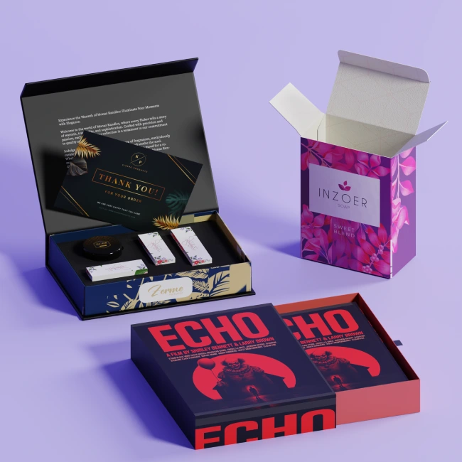 We use state-of-the-art printing techniques, such as offset and digital printing with CMYK and Pantone (PMS) colour systems on these bespoke boxes. We create branded boxes for all industries, including electronics, cosmetics, food, and more. Our expert team ensures every box is tailored to your specifications, delivering functionality, durability, and standout shelf appeal.